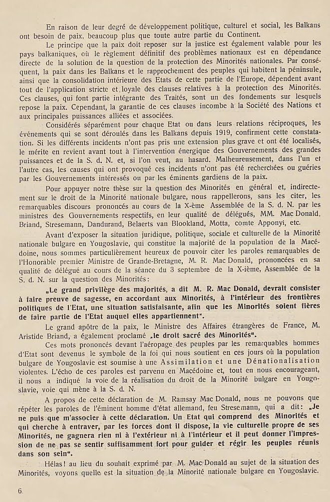 Основавайки се на тоя договор, населението се обръща към ОН с молба, то да изпълни и приложи договора за покровителство на малцинствата в дадения случай за българското малцинство в Югославия, дето то съставя компактна маса всред населението, което живее Македония.